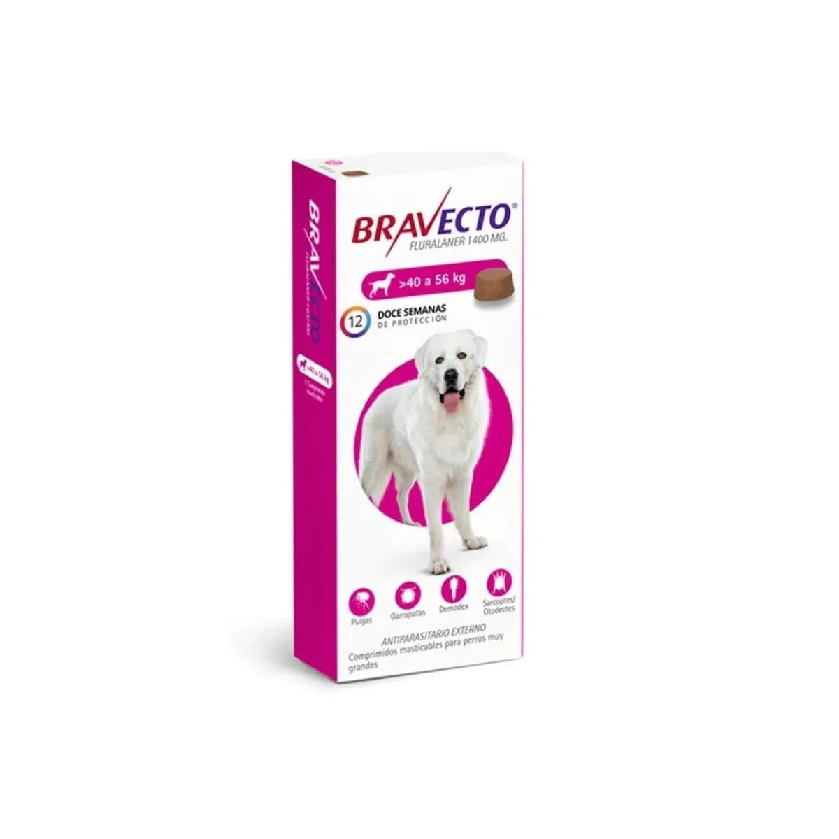 Bravecto 40-56 kg está diseñado específicamente para brindar protección completa a perros extra grandes. Con una fórmula potente y de acción prolongada, combate eficazmente pulgas, garrapatas y sarna, cuidando la salud y el confort de tu mascota en un práctico comprimido masticable.