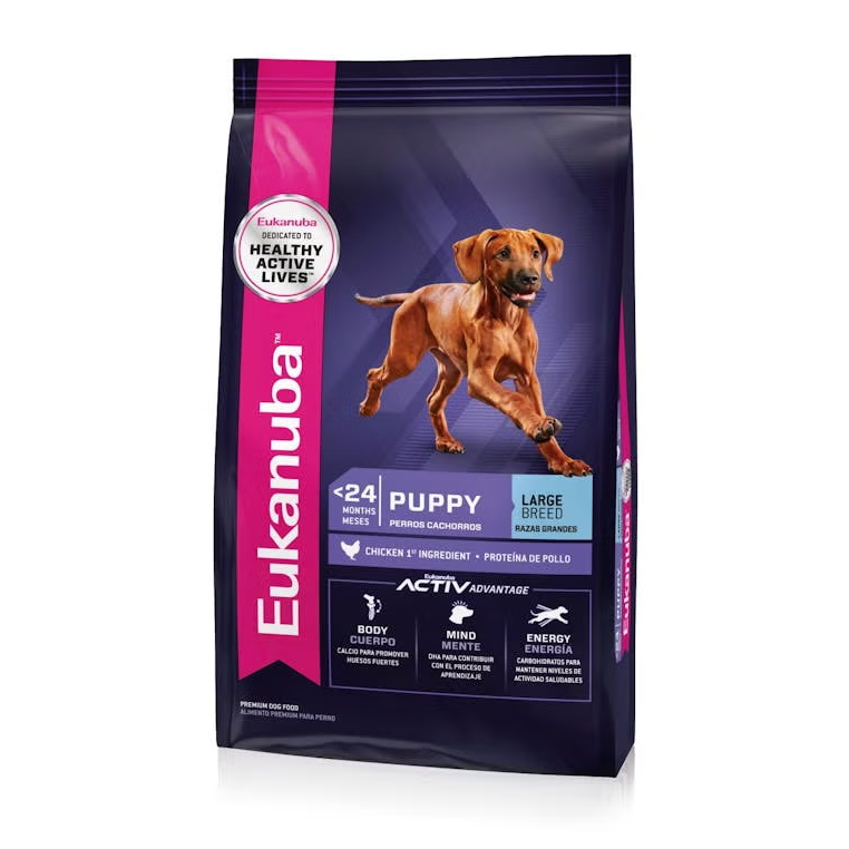 Eukanuba Puppy Large Breed es un alimento balanceado completo para cachorros entre 1 y 12 meses de edad en el caso de razas grandes o hasta los 24 meses en el caso de razas gigantes. Recomendado para cachorros de razas grandes o perros mestizos que en su etapa adulta pesan más de 25 kg (razas grandes) o más de 50 kg (razas gigantes).