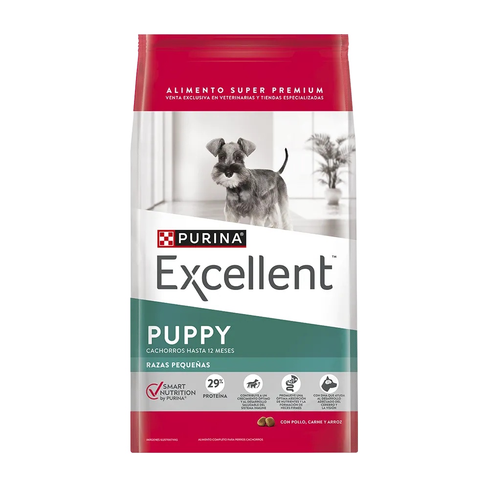 Purina Excellent le ofrece a tu cachorro una nutrición que favorece su desarrollo y crecimiento. Con proteínas de alta calidad e inclusión del prebiótico natural que colabora con una buena salud digestiva. Con el sistema SMART NUTRITION Purina, que aporta múltiples beneficios científicamente comprobados, que mantienen a tu cachorro con un excelente estado de salud.