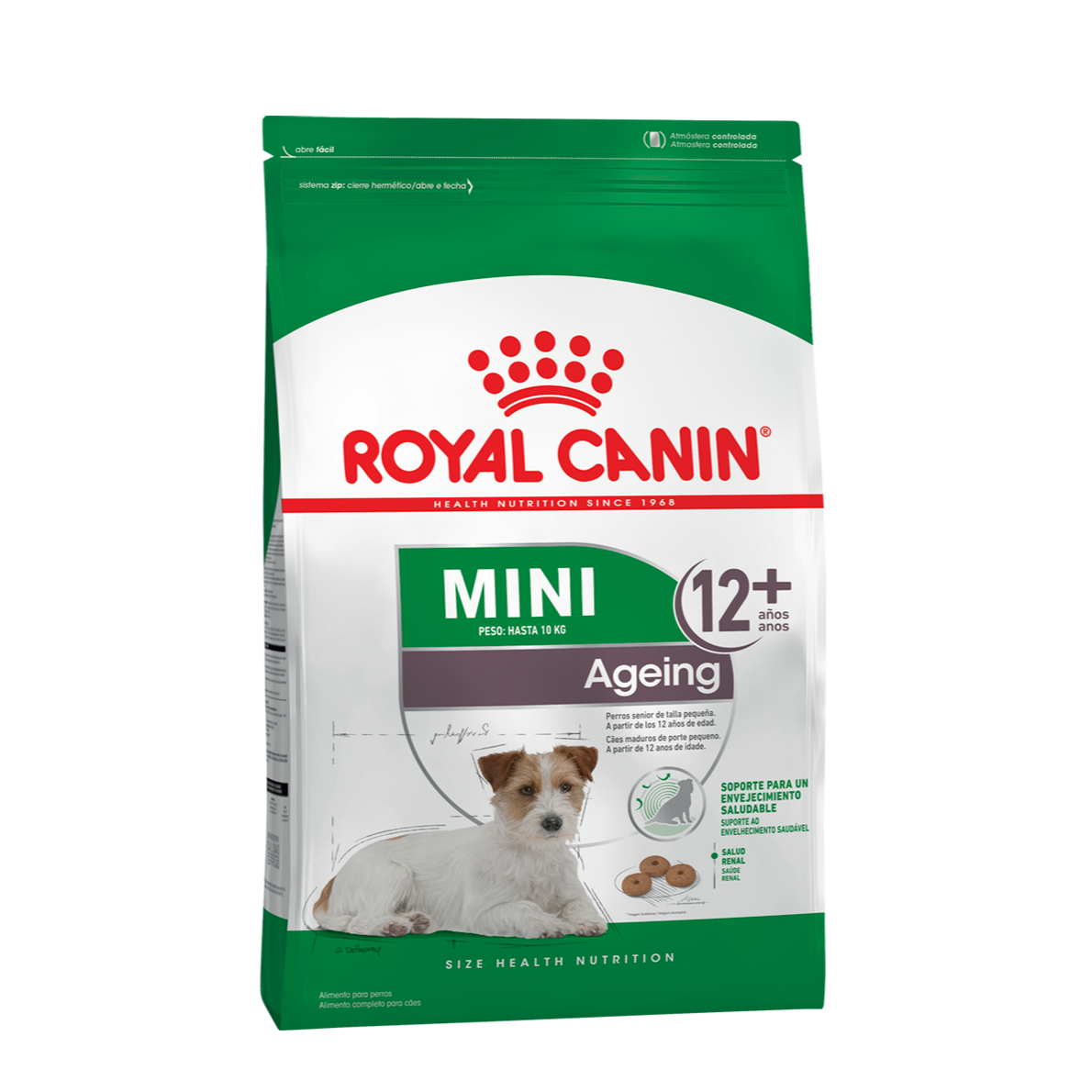 Royal Canin Mini Ageing 12+ favorece el envejecimiento saludable, y ayuda a mantener un sistema renal, una piel y un pelaje saludable.