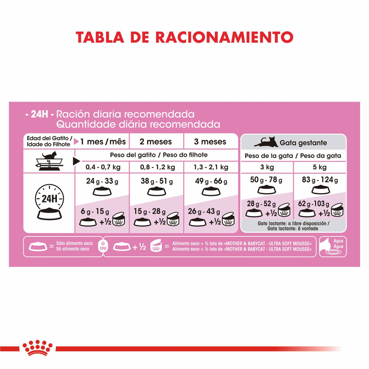 Royal Canin Mother & Babycat es especial para facilitar el destete, ayuda a reforzar el sistema inmunológico del gatito y brinda una tolerancia digestiva reforzada.