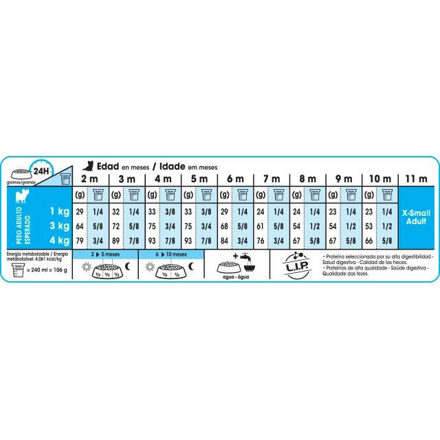 Alimento para perros cachorros de talla muy pequeña (hasta 4 kg de peso adulto). Desde los 2 hasta los 10 meses de edad.